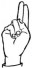 На ћирилици написано НЕБОЈША ИВЉАНИН састоји се из 14 слова [?]. Исписано ћириличном једноручном азбуком за глувонеме: